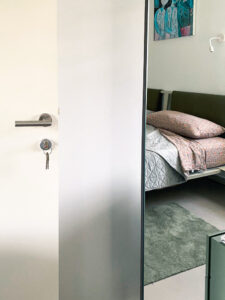 I toni verdi scelti per pareti e arredi — ispirati alla natura — evocano la quiete dei prati e la freschezza del paesaggio, creando un’atmosfera rilassante e accogliente. Gli arredi, selezionati con attenzione, coniugano funzionalità ed estetica per far sentire ogni ospite davvero a casa.